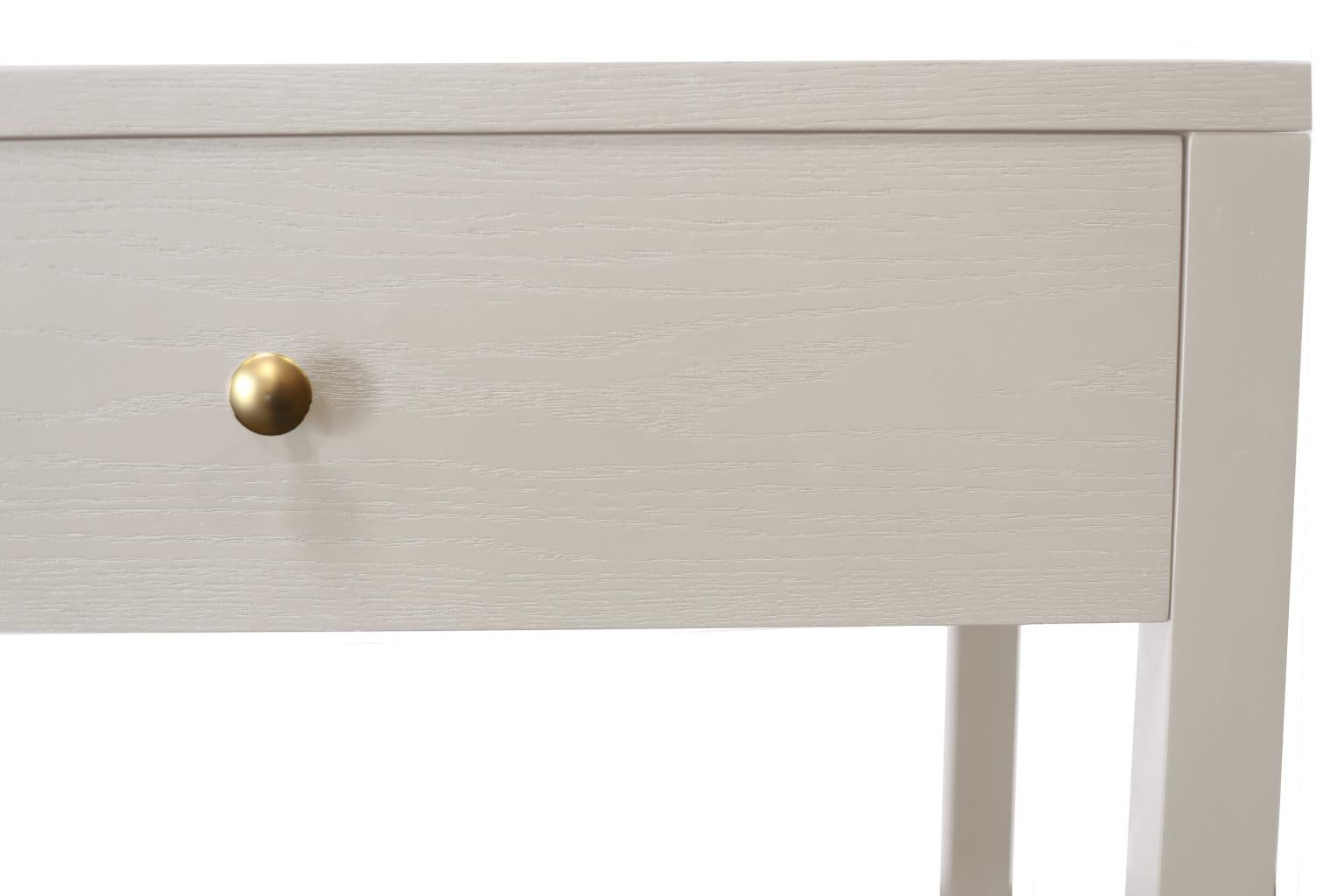 Available in Coconut Milk for a soft, neutral vibe. Knobs in Brass Finish Ball Bearing Drawer Glides