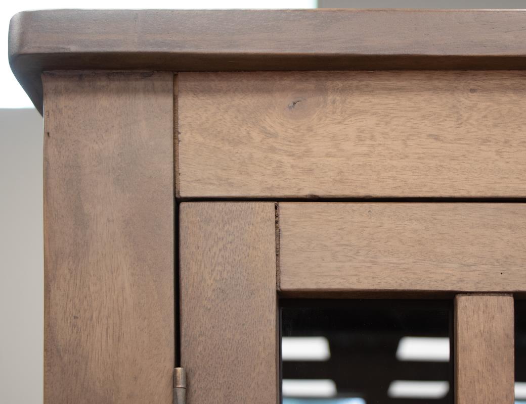 - Tops are crafted from parota wood, while sustainable mango wood is used for the rest of the case piece.