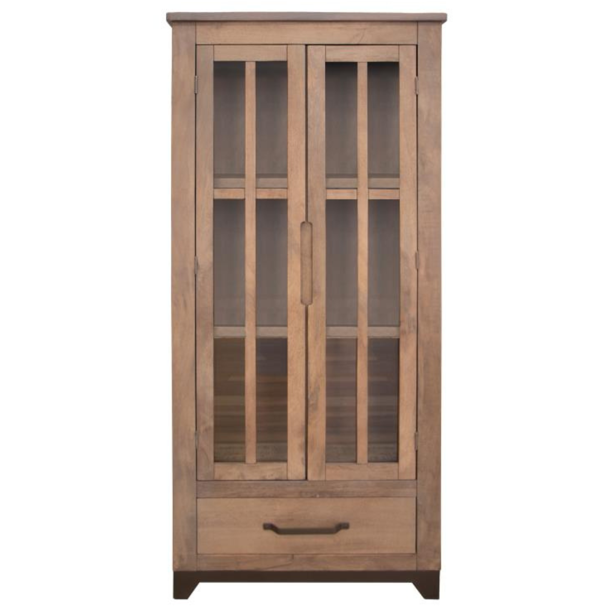 Parota Glass Door & Drawer Cabinet - Natural Brown