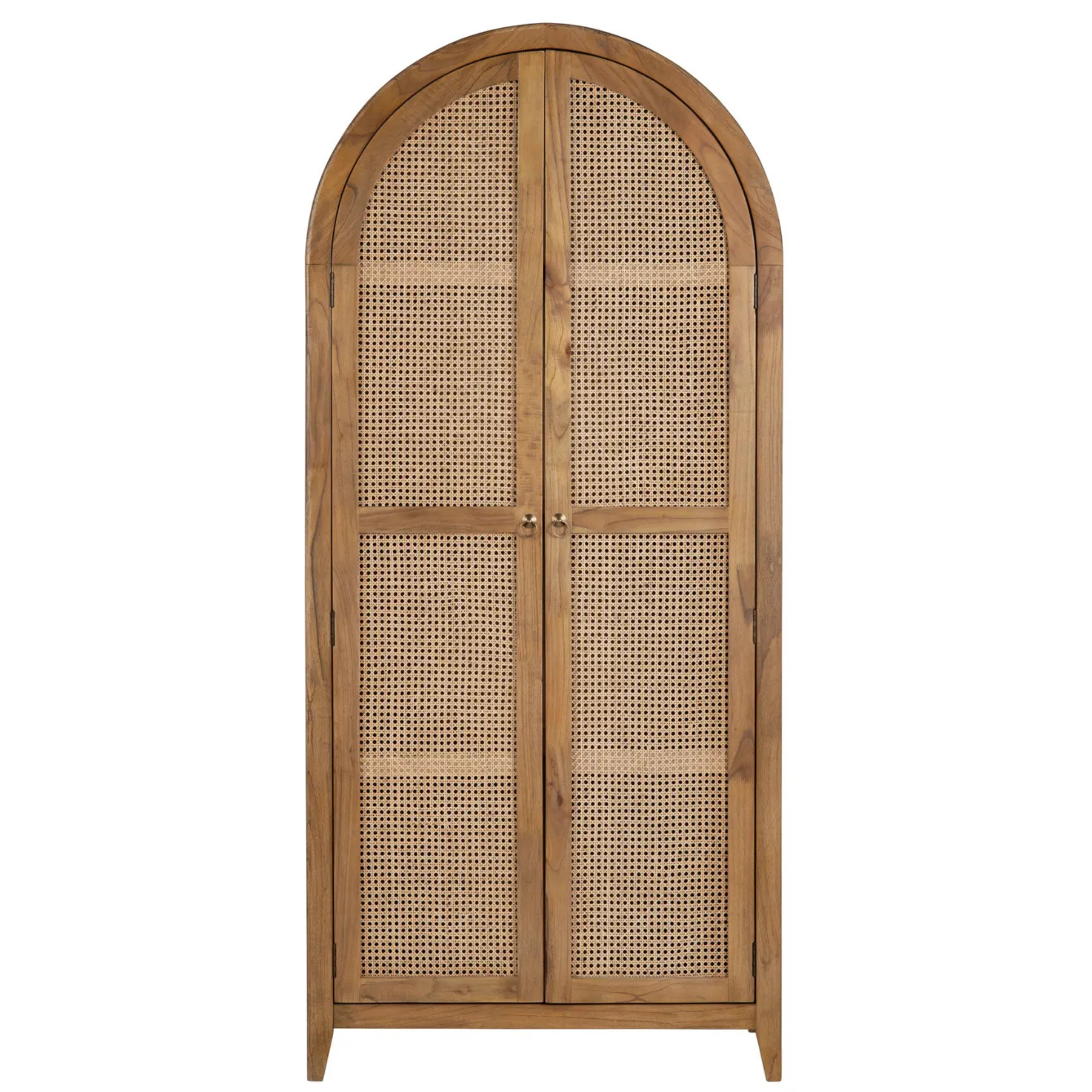 Introducing the Valencia arched cabinet. A beautiful combination of solid wood with rattan door panels.