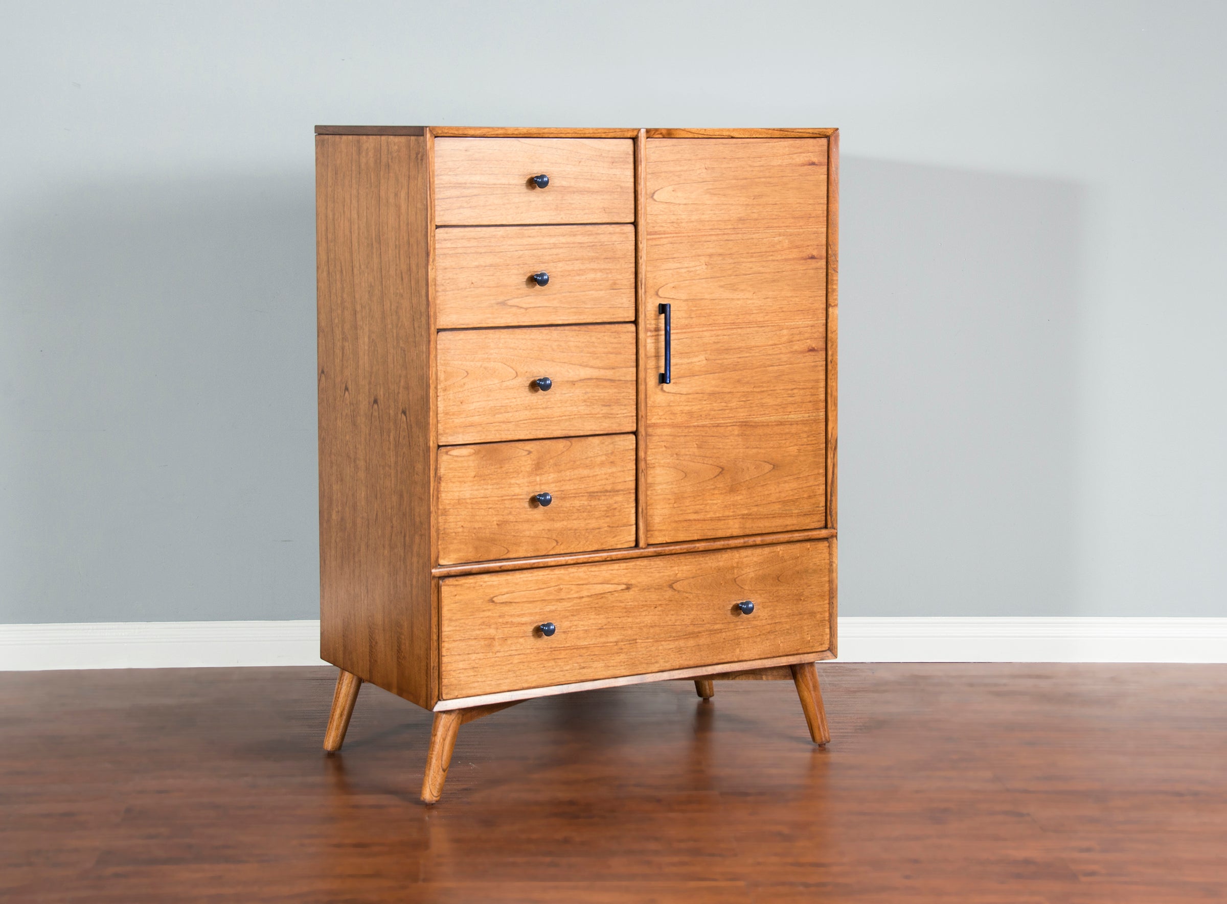 The American bedroom set, is a modern take on a mid-century design. Its delicate straight lines and clever construction with mindi solids and veneers, makes this bedroom set the perfect choice for any bedroom.