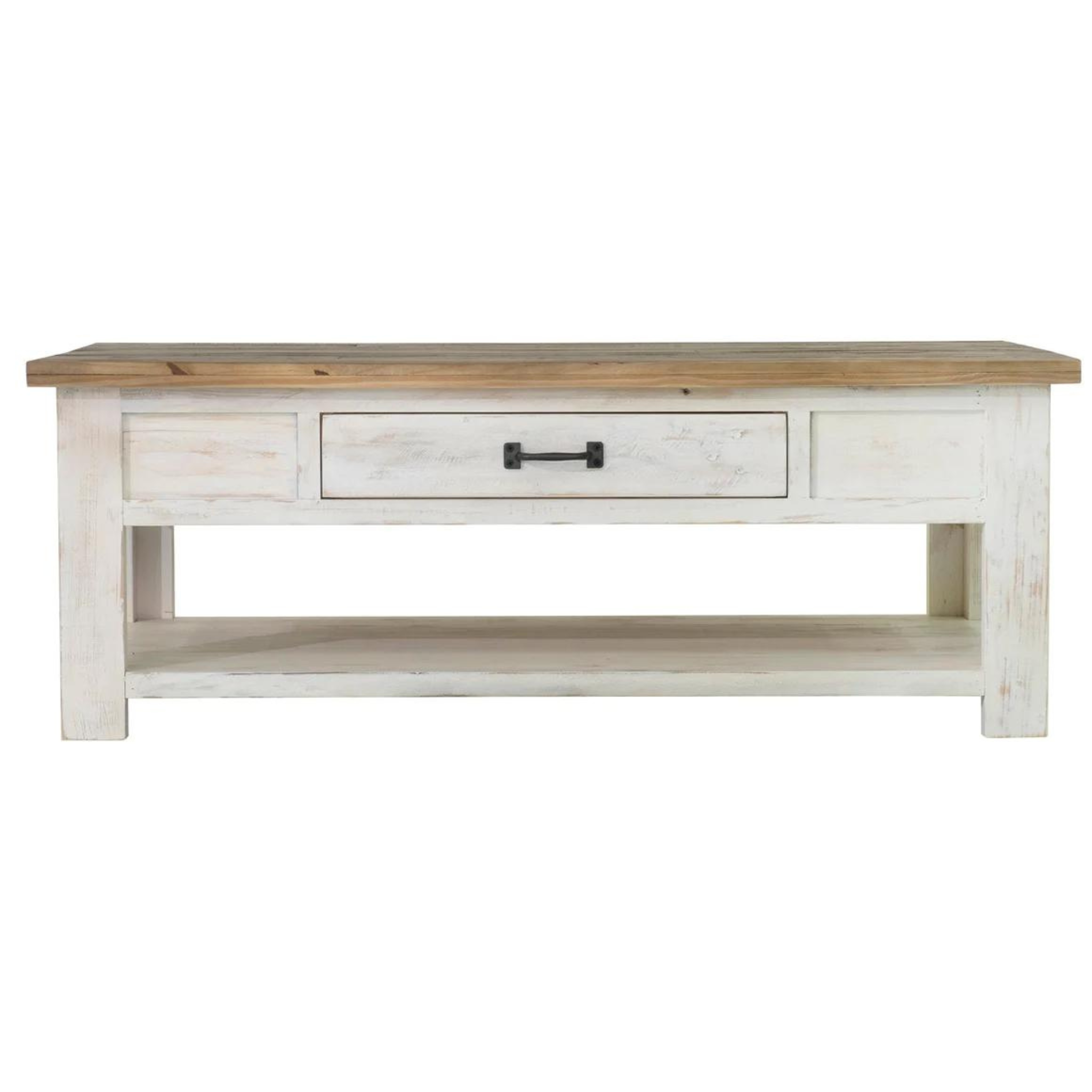 This item embodies natural rustic charm. This collection features an antique white finish, farmhouse gliding doors and lots of room for storage!