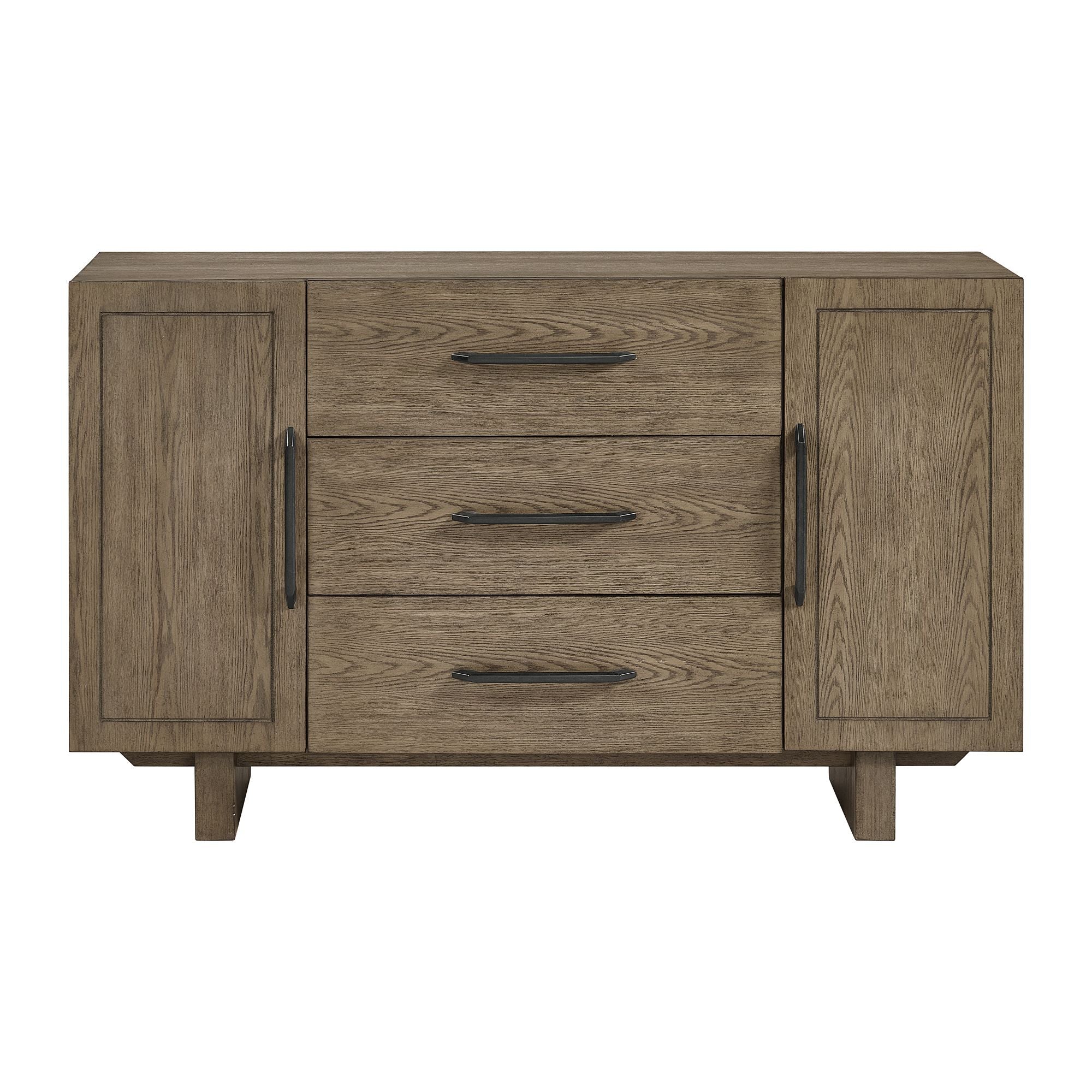 Introducing the Conner Server from the Conner Dining Room Collection by Elements Furniture. This stunning piece features an exquisite Oak Finish that adds warmth and charm to any dining room. Crafted from high-quality hardwood solids and veneers, the server ensures durability and longevity. With its spacious storage compartments and drawers, it offers ample space to store your dining essentials, keeping your space organized and clutter-free. Whether used for serving dishes or displaying decor, the Conner Server adds both functionality and style to your dining area. Elevate your dining experience with the timeless elegance of the Conner Server.