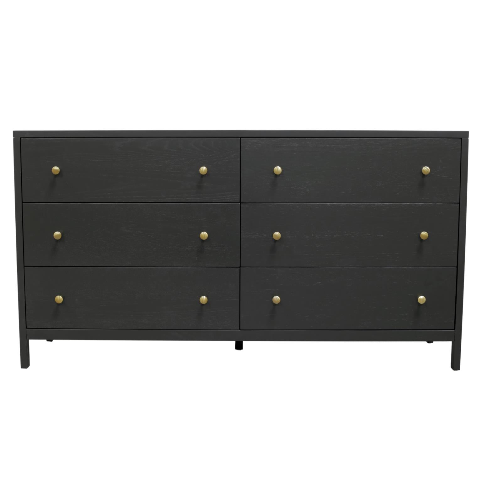 Bring contemporary charm to your bedroom ensemble while keeping clutter to a minimum with this stylish Avery black dresser. This 6 Drawer Dresser showcases clean lines and a beautiful black finish to give your room a pop of color. Features include top felt-lined drawers and brass drawer handles.