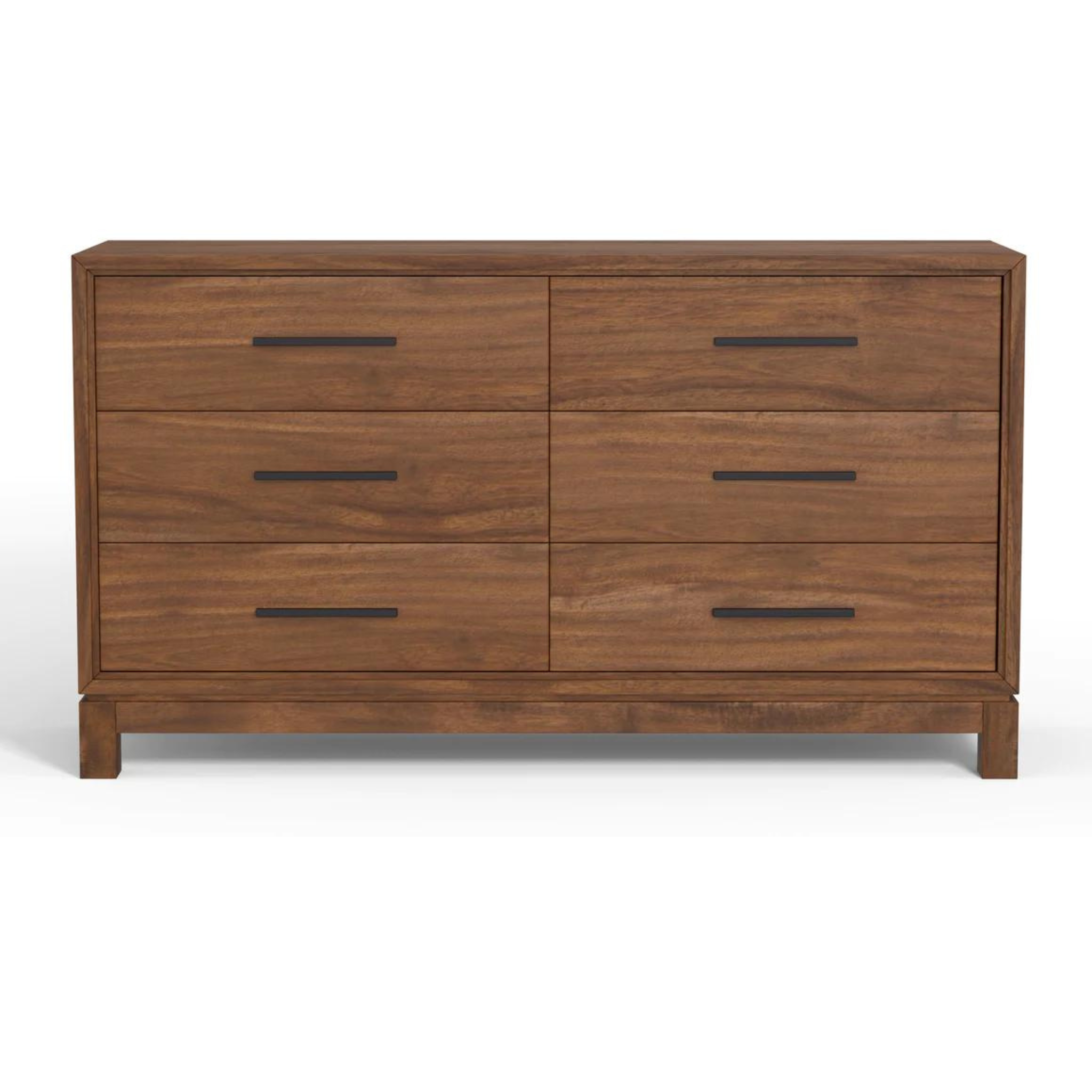The Nova six drawer dresser adds a load of character to your bedroom space. Showcasing eco-friendly Mahogany, this transitional design provides elegance and function. A warm Honey Maple (Brown) finish, brass hardware, and felt-lined top drawer are added features. The piece ships fully assembled. Coordinates with other pieces from the Origins by Alpine Nova collection.