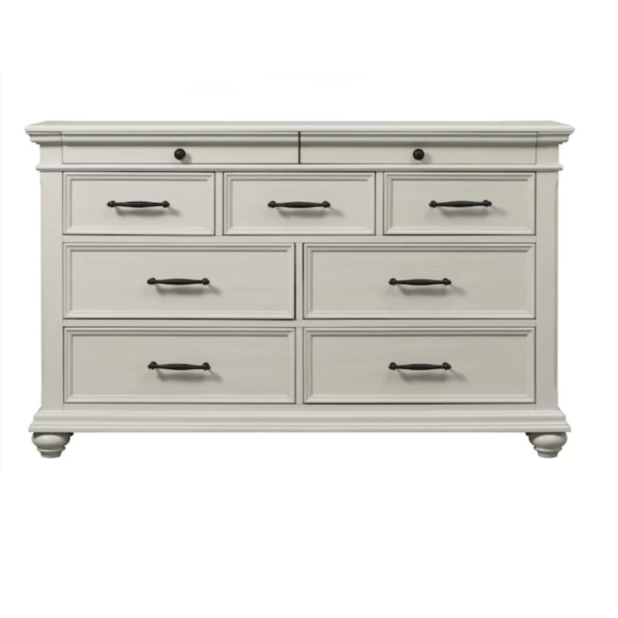 The Slater bedroom collection will add comfort and style to any bedroom. The classic design of this collection is complimented by the picturesque framing and black hardware. The creamy white finish can easily brighten your bedroom, giving off a crisp, clean feel. The craftsmanship and minimalistic design makes this a great set to add in a pop of color or personality!