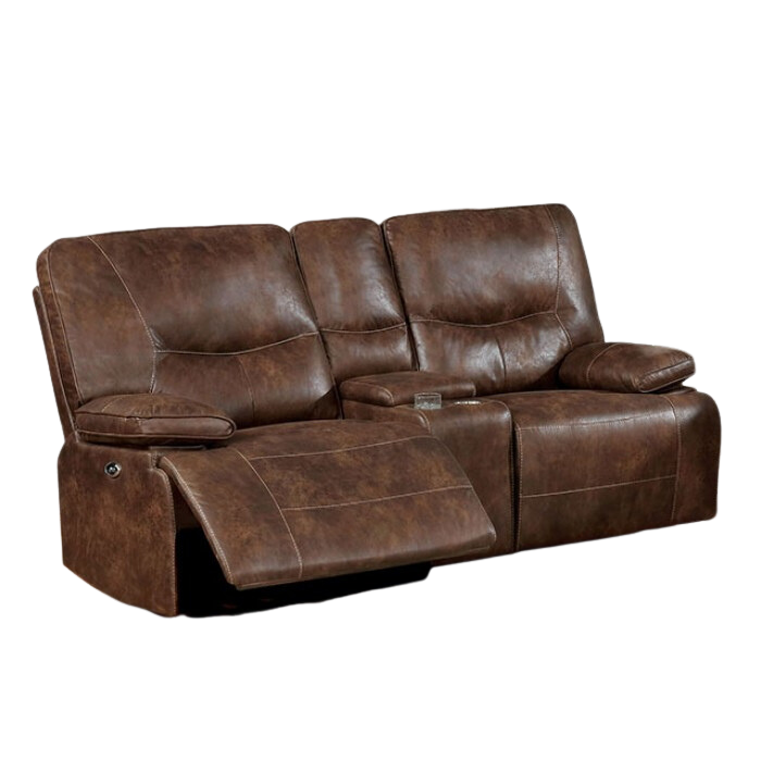For those looking for a warmer, earthier tone to fill in their space, this recliner group is the answer. Fully upholstered in Fabric-like Vinyl in a tone reminiscent of the natural beauty outside, this sofa will work in a rustic or barnyard aesthetic. The recliners are all powered with a motor, so you have the power in your hands to select your own level and angle of comfort. Accompanying USB charger slot allows for worry free technology as you enjoy what's on the big screen.
