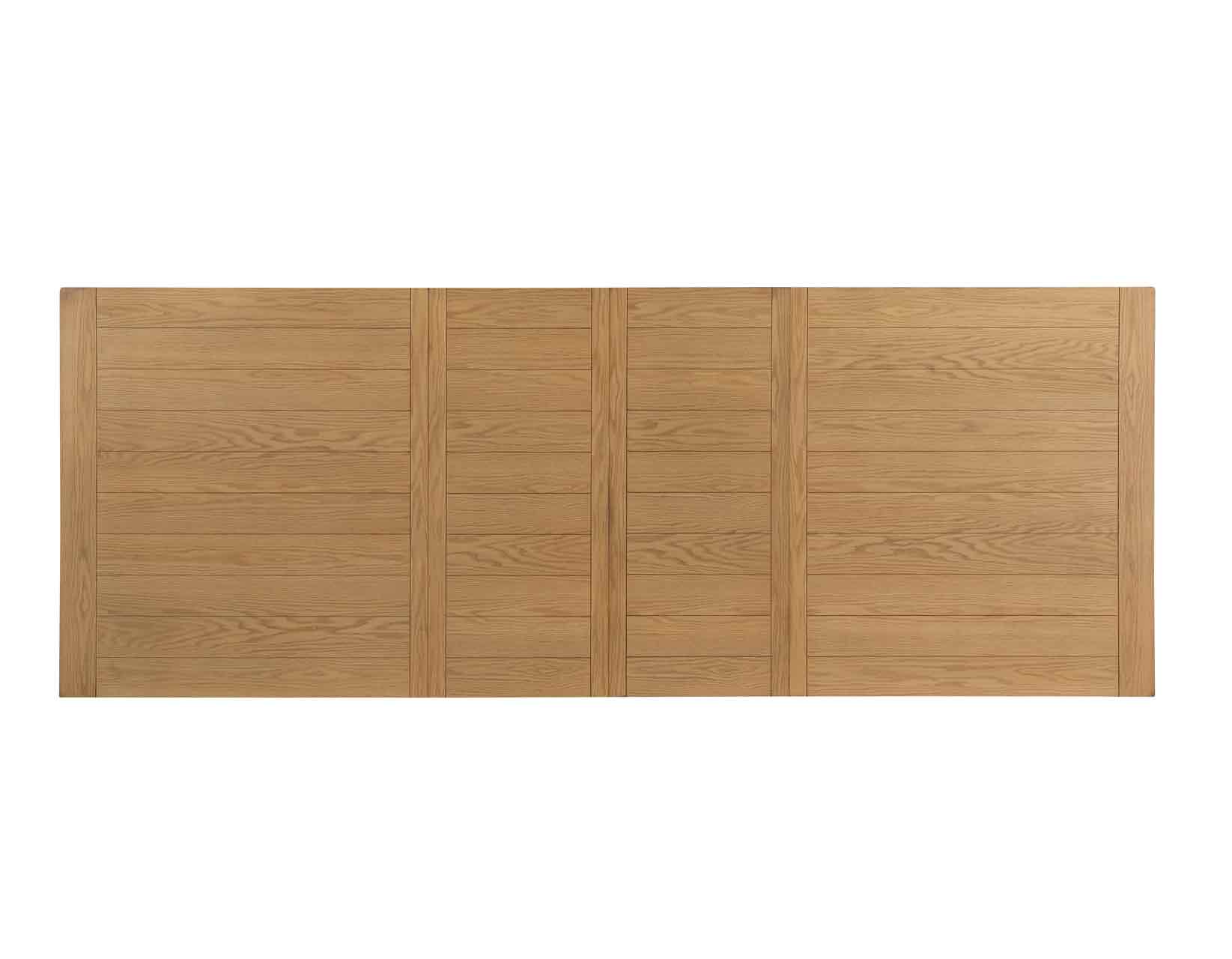 Large scale and generous proportions define the silhouette of this instant Modern Farmhouse dining table classic. A naturally finished top highlights the character and grain of the oak veneers and complements the substantial but refined white double pedestal base. This 72-inch long table fits in most dining room but scales at an instant to 96 and 108-inches to seat up to 10 guests easily.