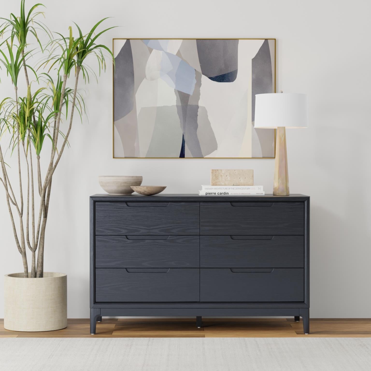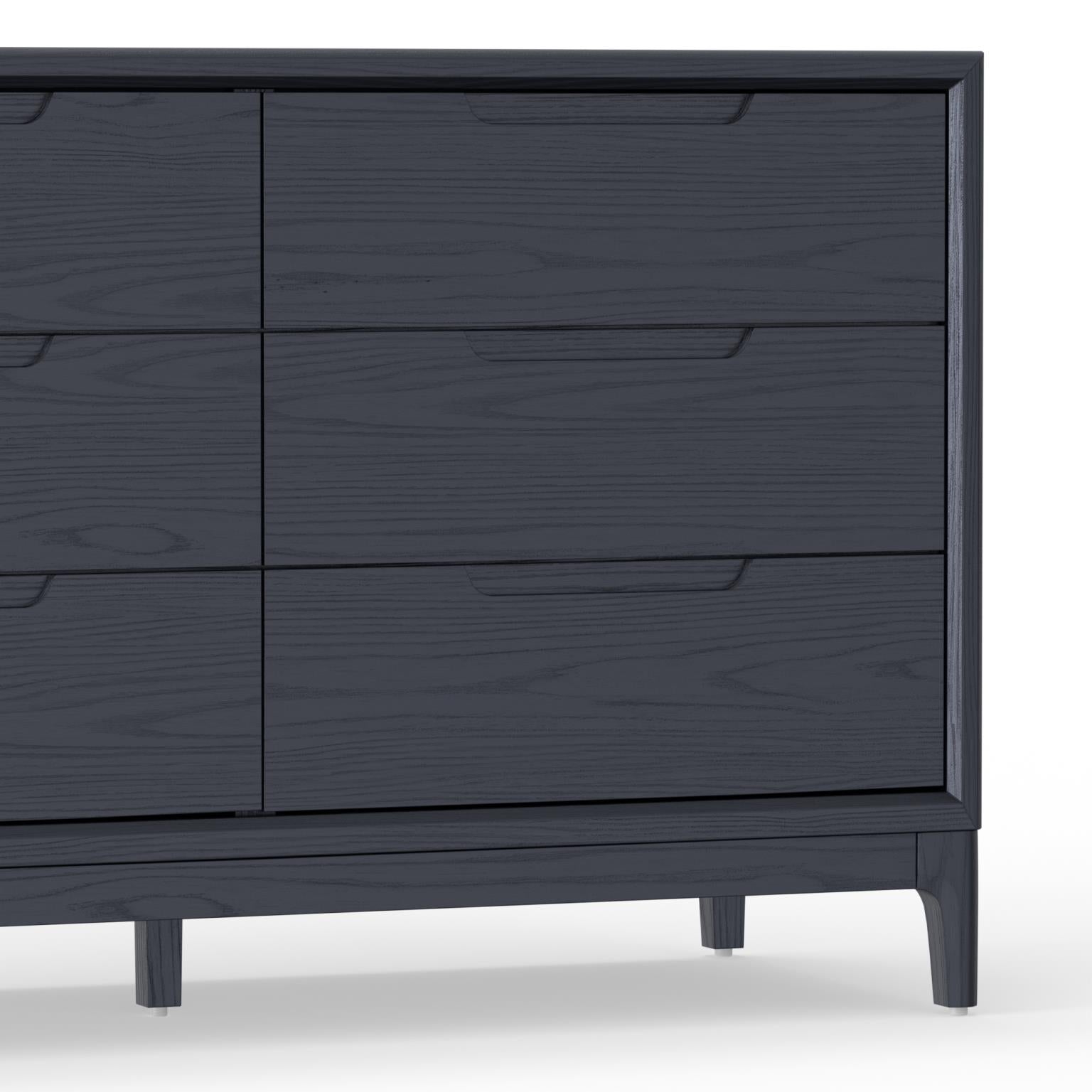 Elevate your bedroom space with the Cove Vintage Black Dresser from our Cove collection. Crafted with meticulous attention to detail, this dresser features a timeless vintage black finish that complements any decor style. Constructed with mindy solids and veneer, it offers durability and longevity. With six large drawers, you'll find ample storage space, enhanced by soft-close mechanisms for convenience. Effortless assembly involves attaching the legs, while its versatile design suits various rooms. Embrace the classic elegance and thoughtful functionality of Cove Vintage Black Dresser to enrich your home ambiance.