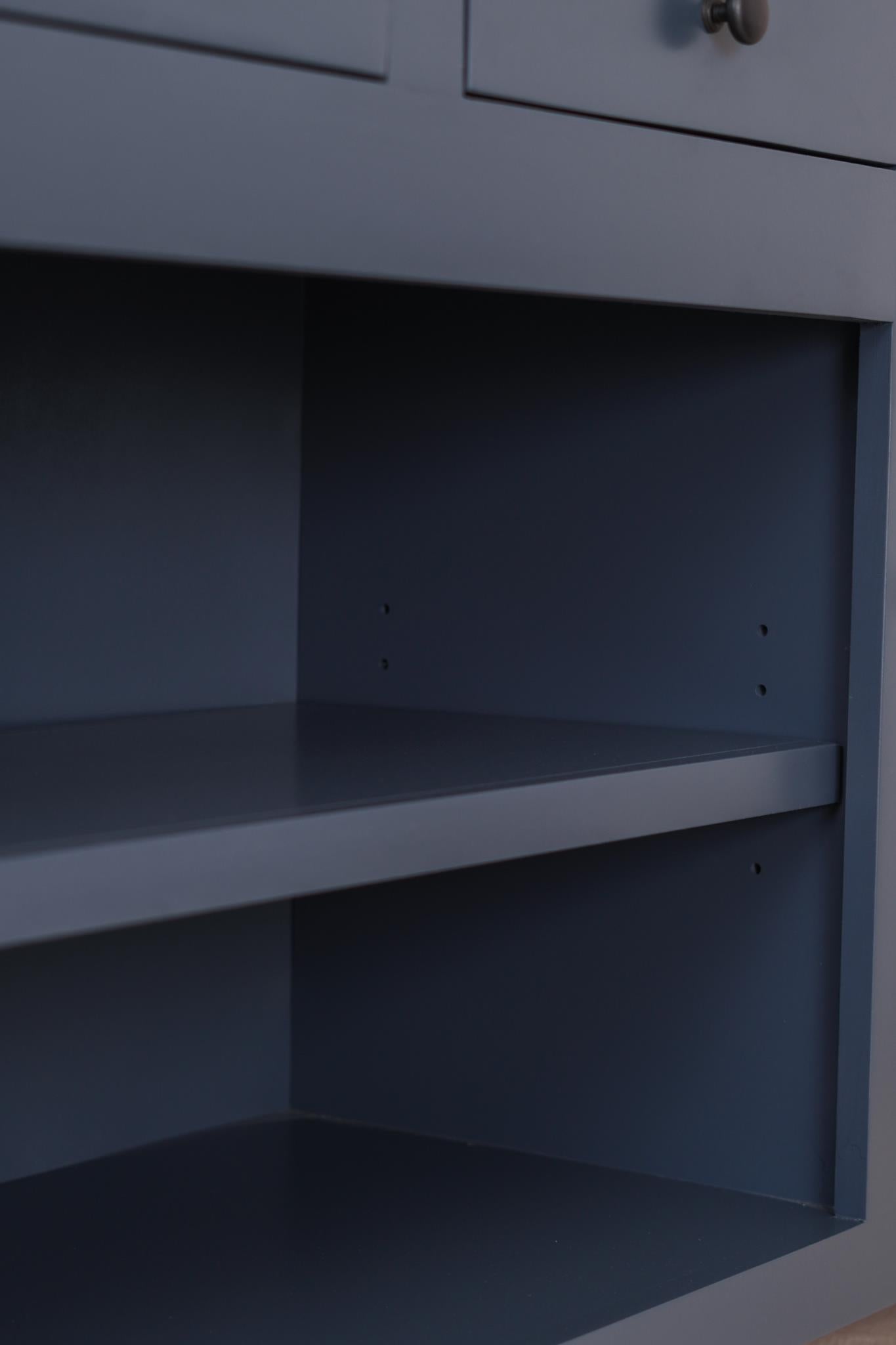 Introducing the Harbor Bay 94" TV console in midnight blue with walnut finish top. A beautiful statement piece with ample storage for all your media. Do movie nights in style with this unique collection.
