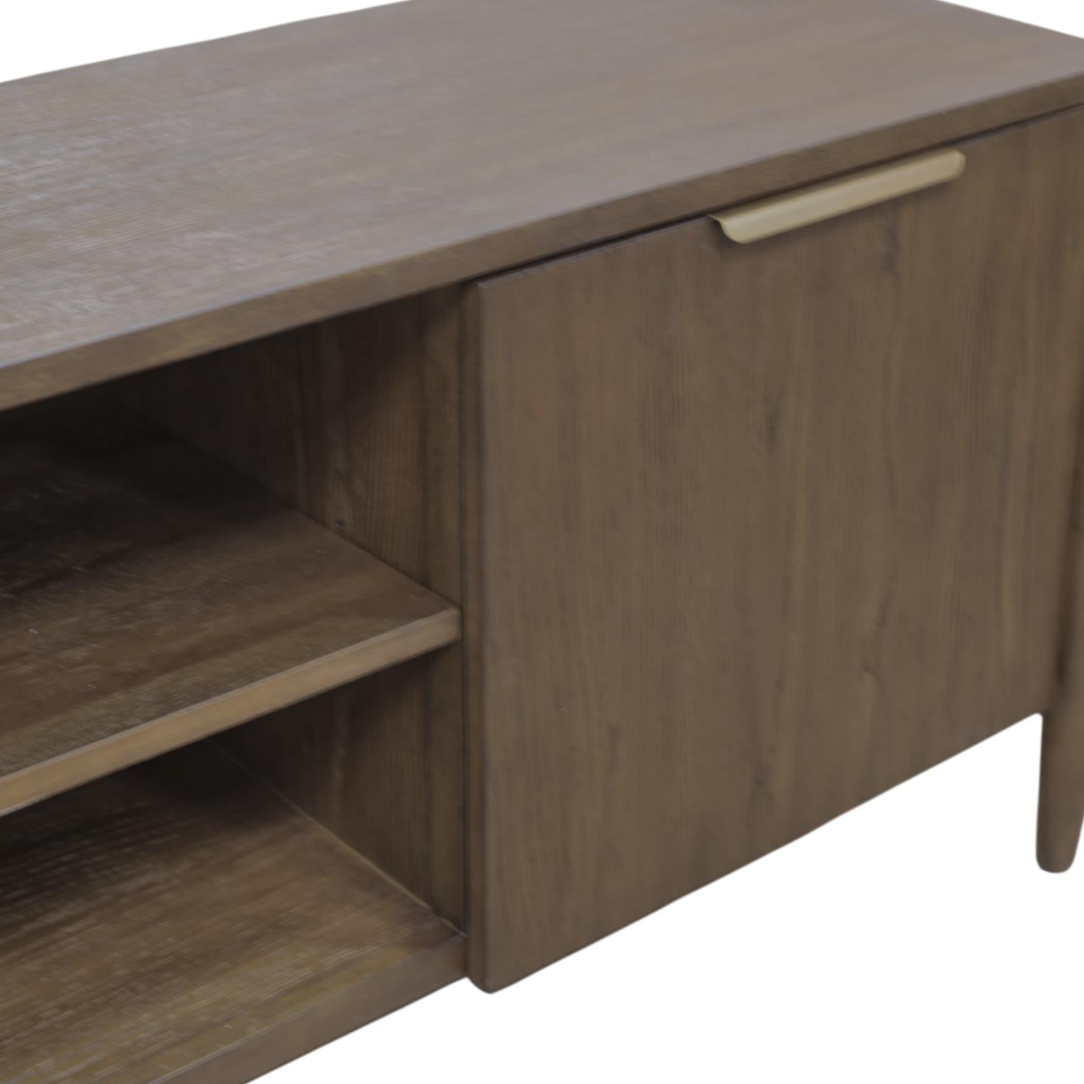 Elevate your entertainment space with the Sinclair TV Console — a sleek blend of modern function and timeless craftsmanship. Available in your choice of a warm Walnut or breezy Natural finish, this piece is crafted from solid rubberwood with Oak veneer for lasting durability and beauty. The streamlined silhouette, tapered legs, and clean lines make it a versatile centerpiece that complements any décor style. With ample closed storage, an adjustable center shelf, and a cable management hole for seamless organization, the Sinclair brings both style and simplicity to your living room.