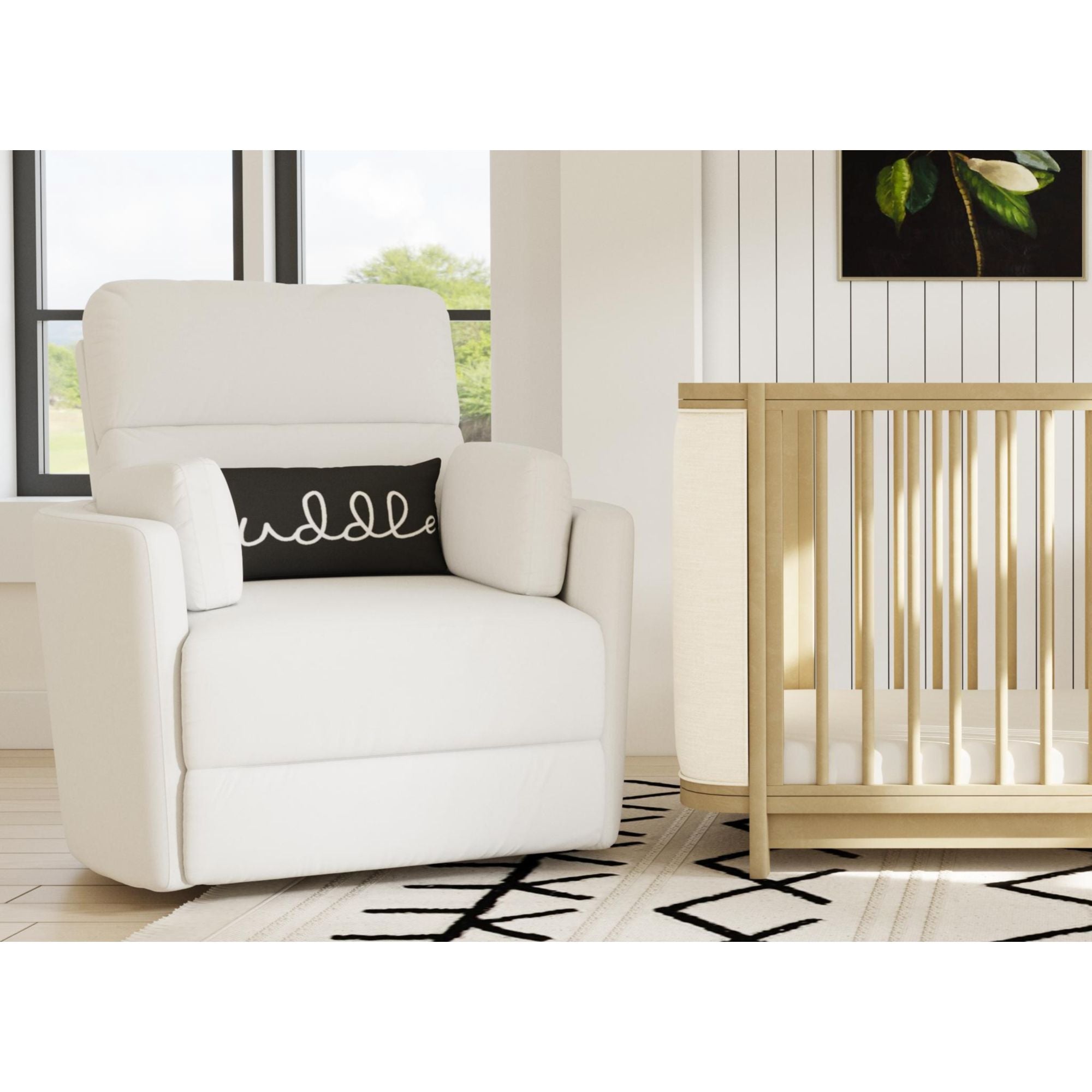 Introducing the Avila nursery swivel power glider recliner. Enjoy all those precious moments in ultimate comfort. Upholstered in easy to clean high performance fabric.