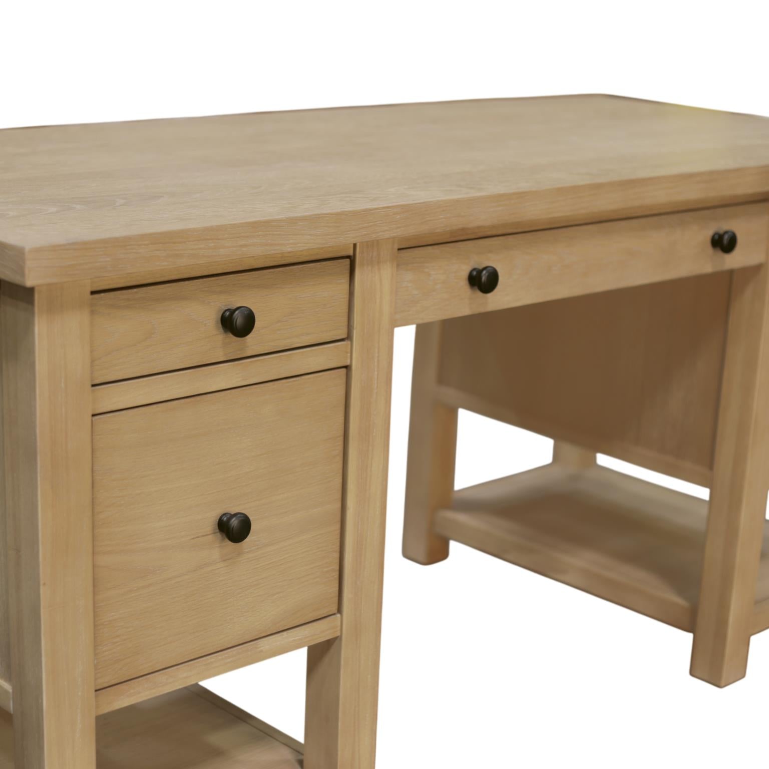 Elevate your workspace with the timeless charm of the Emilia Desk, where modern farmhouse style meets everyday functionality. Crafted from durable rubberwood solids and oak veneer, this desk blends rustic warmth with clean, simple lines that feel at home in any setting. Its fully finished front and back ensure it looks stunning from every angle, whether placed against a wall or floating in the center of a room. With multiple drawers for organized storage and open shelving for added versatility, the Emilia Desk is designed to keep your essentials within reach while offering a spacious surface for work, study, or creativity. Thoughtfully built and fully assembled, it’s ready to inspire productivity and style from the moment it arrives.